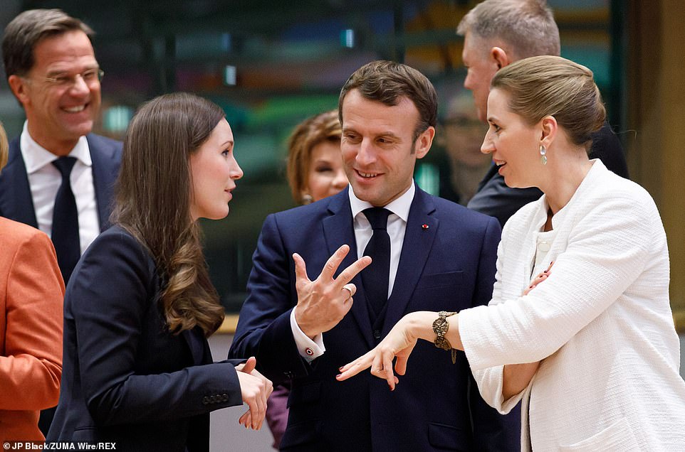 Marin, kryeministrja e re në botë, pati debutimin e saj ndërkombëtar në këtë samit dhe kreu i Elizesë duket ia bëri më të lehtë prezantimin me liderët e vendeve anëtare.